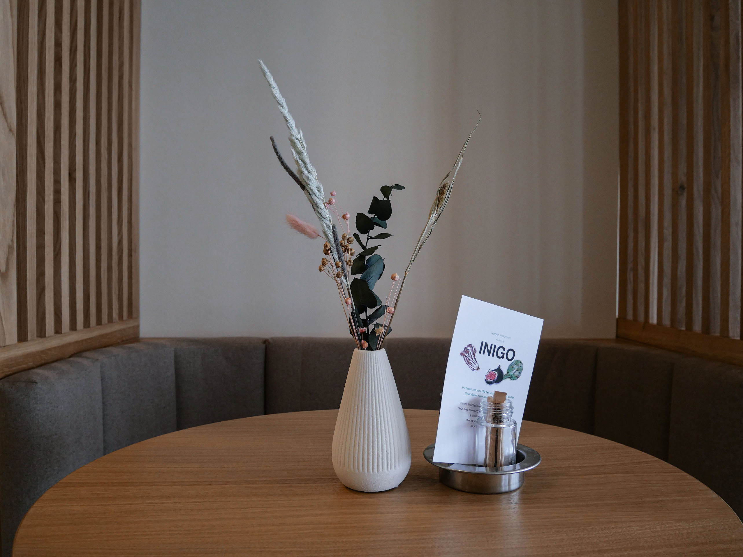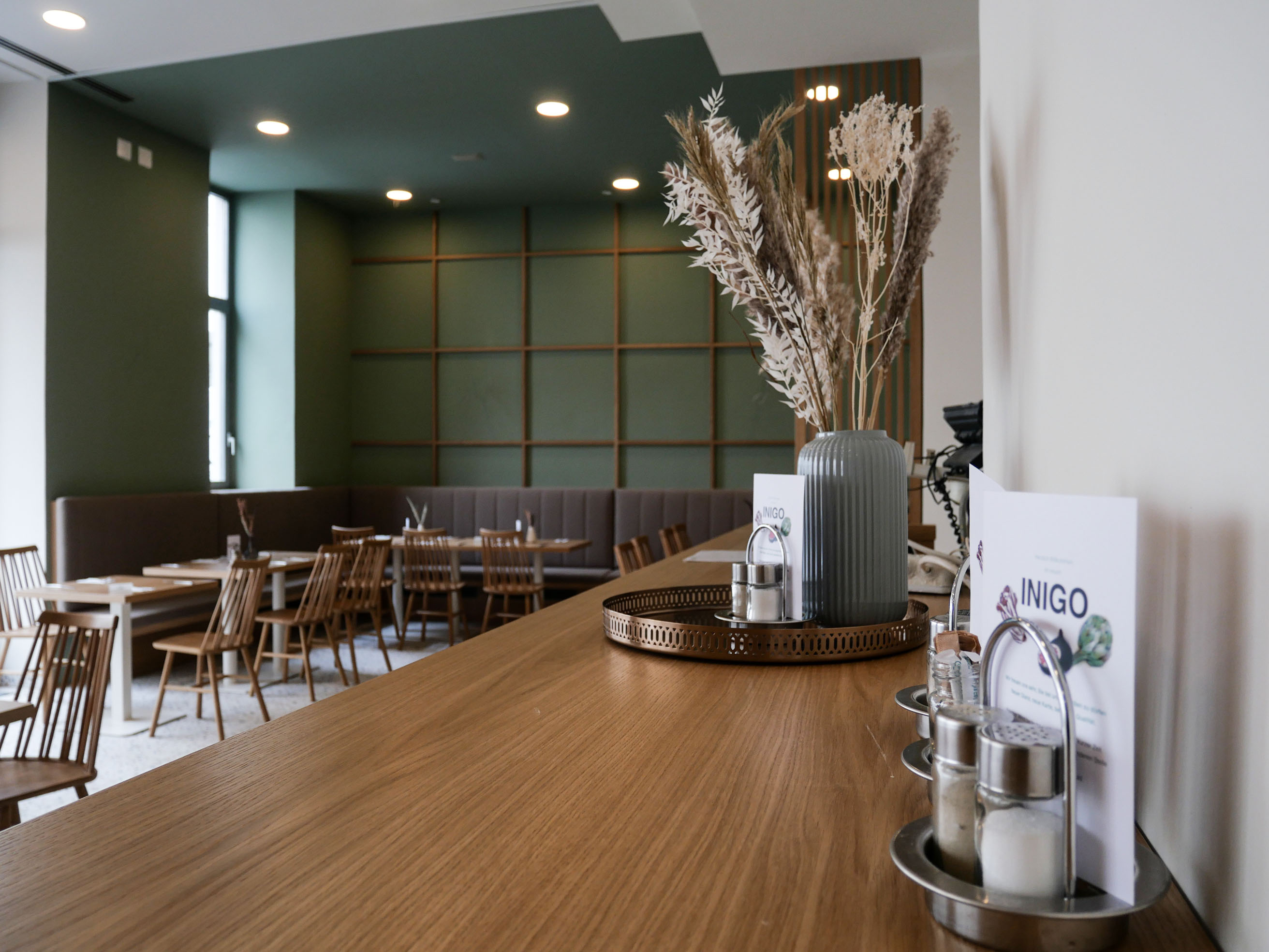 Für diesen Wiedereinstieg wurde mit natürlichen Materialien, neuer Zonierung, gedeckten Farben und schallabsorbierenden Stoffen eine entspannte Atmosphäre geschaffen. Das INIGO präsentiert sich im neuen Look, mit bewährter Qualität.